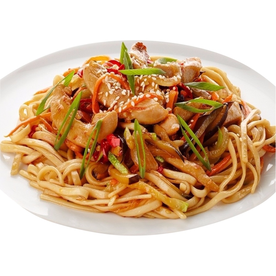 Удон с курицей и соусом терияки 250 гр доставим к Вашему застолью. Затянулись посиделки? Поможем с напитками и с едой!